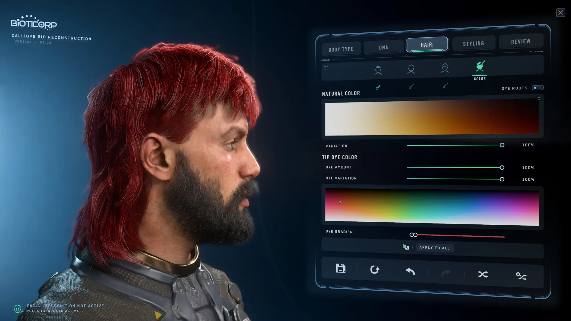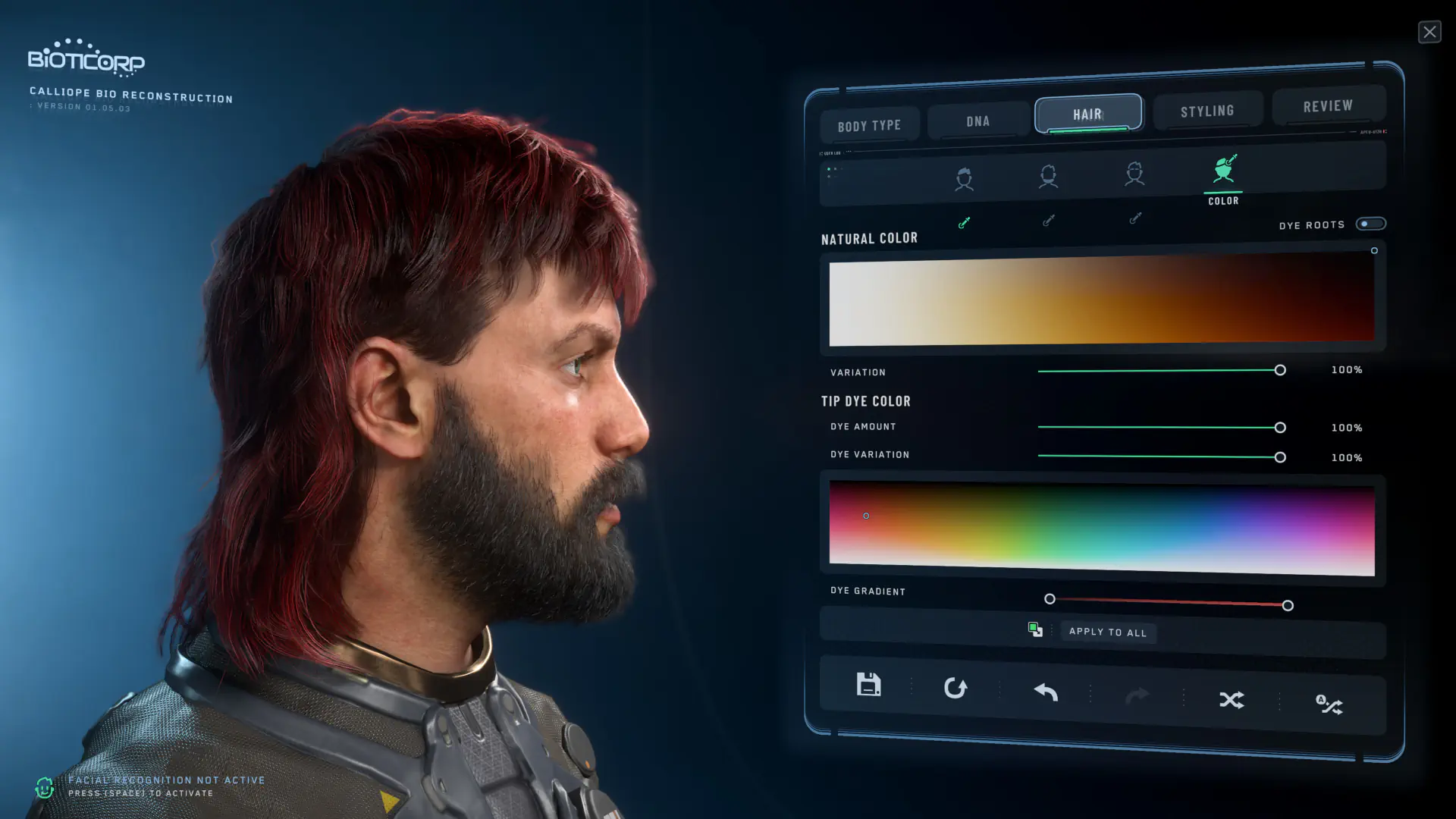 Bist du mit dem Ergebnis zufrieden, kannst du mit Apply To All diese Farben auch auf die Augenbrauen und die Gesichtsbehaarung anwenden, oder du bestimmst alle diese Farben individuell.