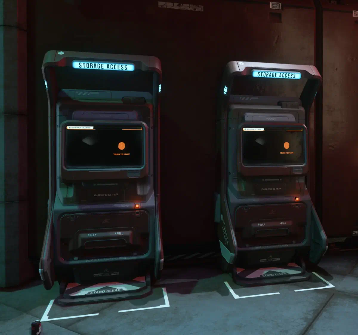 Alle Gegenstände, die du während deiner Abenteuer sammelst, im ingame Shop erwirbst oder auch durch Geldkäufe im Webshop bekommst, sind physikalisiert. Du kannst sie in deinem Hangar an einem Storage Access Terminal lagern und abholen. Bei größeren Objekten musst du den Frachtaufzug nutzen. An deine Schiffe und Fahrzeuge benutzt du den Hangaraufzug.
