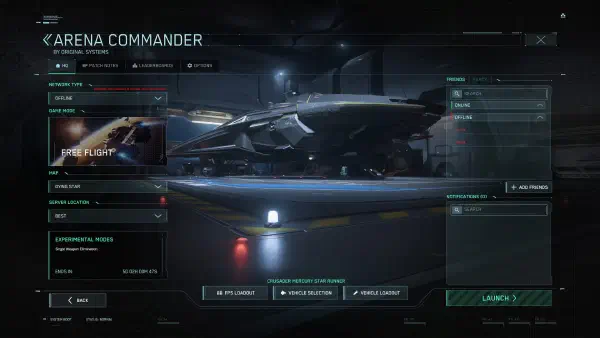 Hier testest du deine neue Steuerung, oder probierst verschiedene Schiffe aus. Außerdem kannst du im Arena Commander verschiedene PVP oder PVE Szenarien spielen.