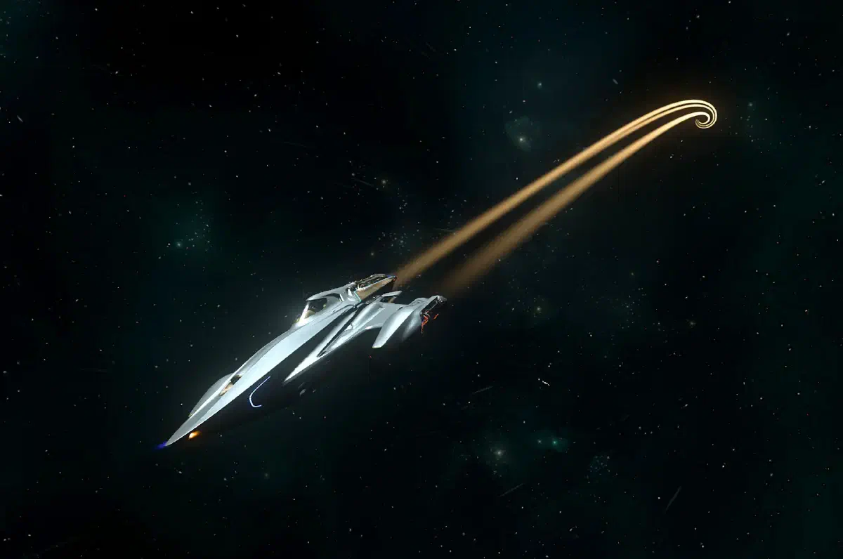 Doch nicht nur optisch überzeugt der neue Star unter den leichten Jägern, auch unter der Haube steckt einiges drin. Ohne Probleme lässt man damit jede Gladius hinter sich. Und auch die Manövrierbarkeit sucht ihresgleichen. Mit Pitch, Yaw und Roll von bis zu 90, 62 und 252 Grad pro Sekunde und von 230 m/s sowie 1.225 m/s SCM und Nav Geschwindigkeit träumen manche nur.